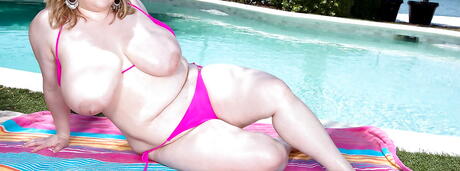 XL Girls: Lush BBW Laddie Lynn in pantaloncini sexy che mostrano grandi knocker e allargando le gambe vicino alla piscina