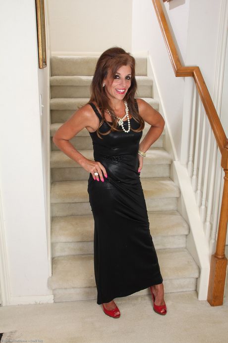 All Over 30: Mature Lady Nicole Newby rimuove un abito nero prima di posare nuda