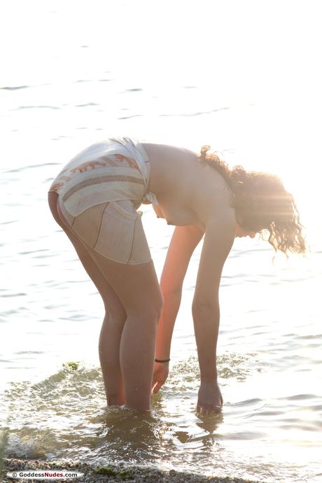 Goddess Nudes: Teen nudo uma c colpisce grandi pose soliste su un patio nel nudo