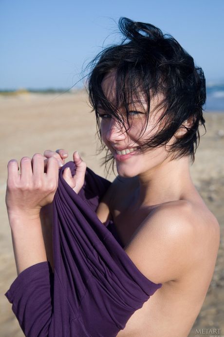 Met Art: Perfetto adolescente alen a strisce nude sul sedile posteriore di un'auto e allarga la figa