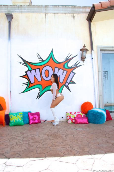 Evil Angel: Pornstar Petite Megan Rain presenta le sue piccole tette e il suo culo all'aperto