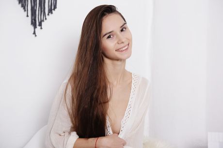 Viv Thomas: Petite adolescente Leona A rimuove una maglietta per diventare nuda in una camera da letto