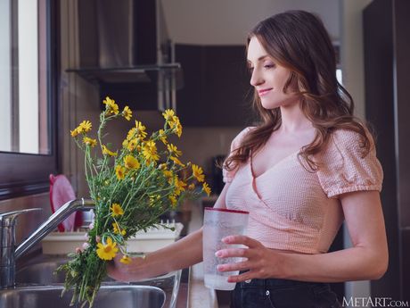 Met Art: La pura adolescente Julietta rimuove il suo bikini e i pantaloncini per posare nude in cucina