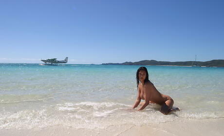 Tera Patrick: Seducenti capelli scuri americani Milf Tera Patrick che esibisce grandi tette e culo sulla spiaggia