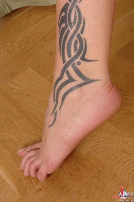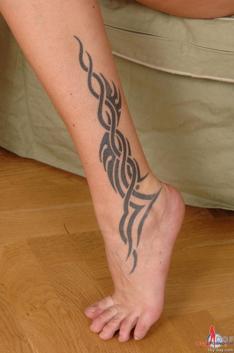 Porn World: Ragazza sexy Alexandra a strisce e mostra i suoi piedi caldi e i tatuaggi