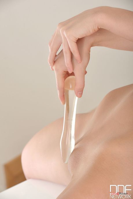 Porn World: Sexy Bionde Polli gioca la sua figa con un dildo di vetro dopo essersi spogliato sui tacchi