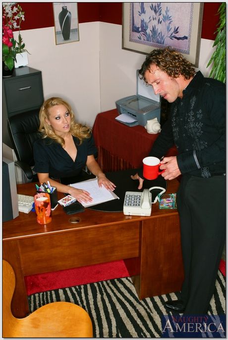 Naughty America: Sexy segretario biondo Jasmine Strisce e mostra le sue grandi tette