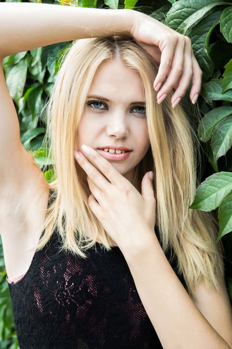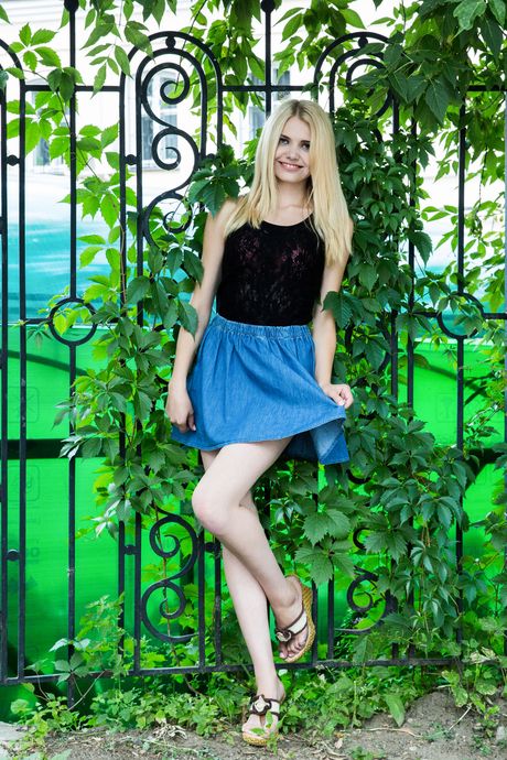 Met Art: Sexy Bionde Teen Madlen diventa nudo con convinzione
