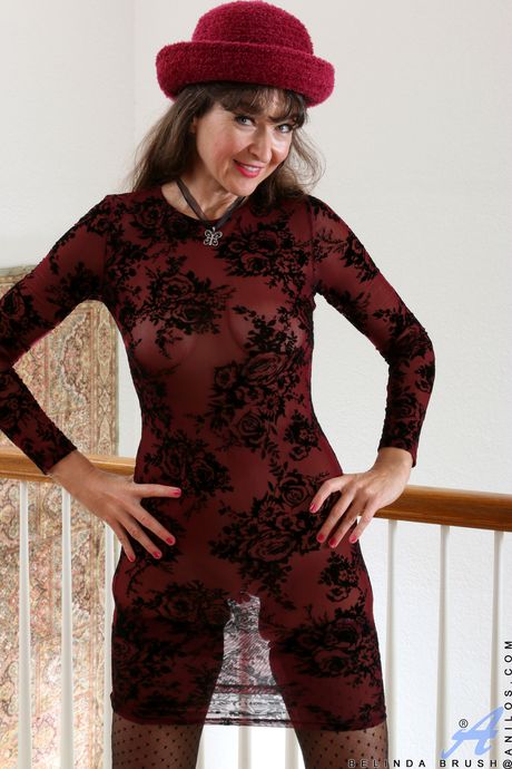 Anilos: Il pennello bruna sexy Belinda rimuove un vestito nero e lingerie per posare nuda
