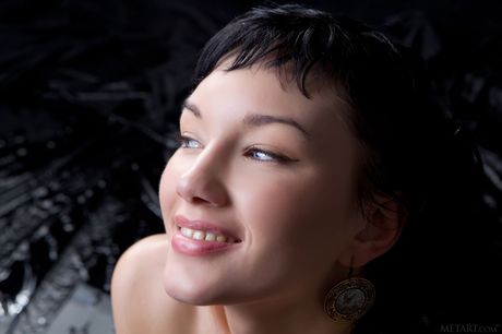 Met Art: Bruna sexy Loreen A mostra le sue tette grandi e la figa pelosa nelle calze