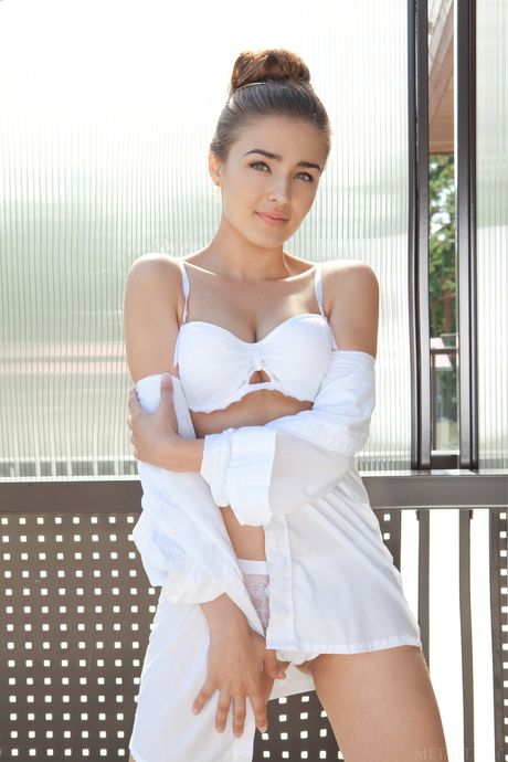 Met Art: Lo splendido adolescente Adriana f rimuove la sua lingerie per posare nuda in un patio
