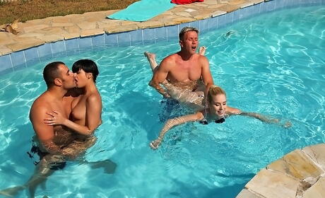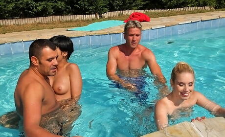 Euro Sex Parties: Ragazze sensuali nestty e coco demol in incredibile scena di sesso di gruppo vicino alla piscina