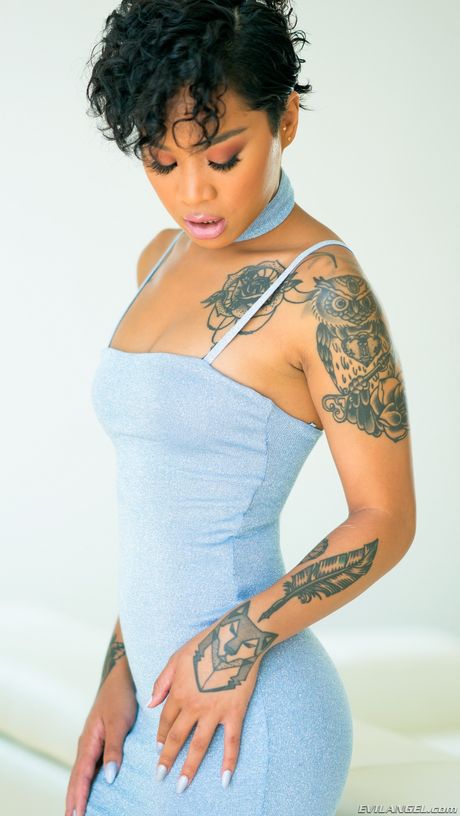 Evil Angel: Gold di bruna tatuato bruna mostra le sue tette naturali mentre cambia look
