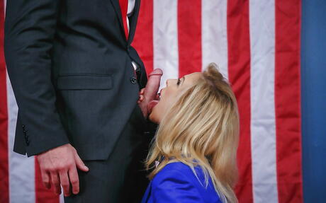 Brazzers Exxtra: Allettante bionda americana milf Cherie Deville soffia sull'asta e fa un colpo di sperma disordinato