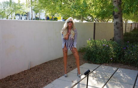 Wifeys World: Allettante moglie americana Sandra Otterson che rivela grandi tette e allargando le gambe fuori