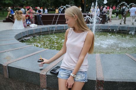 Sex Art: Ucraino hottie nancy una strisce e masturba la sua figa nel parco