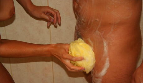 Soapy Massage: 魅力的なオリエンタル・ミルフ、ライダー・スカイがお風呂で竿オナニー