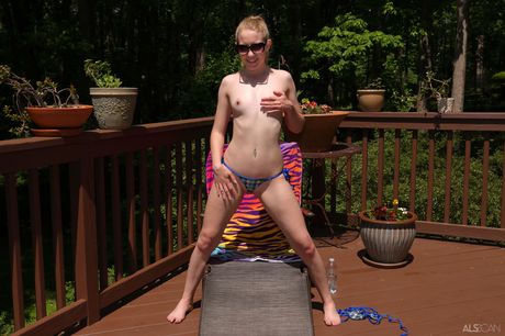 ALS Scan: 金髪の素人、カリー・テイラーが野外で小便とオナニーをする。