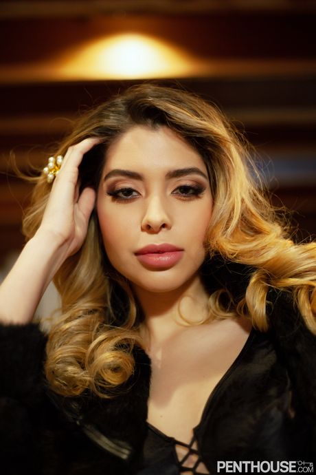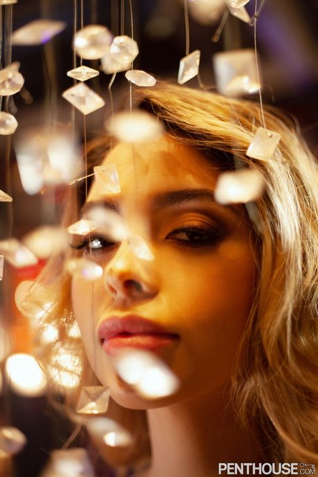 Penthouse Gold: 金髪美女のジョセリンがキュートなオッパイを露わにし、ハイヒールでポーズを決める