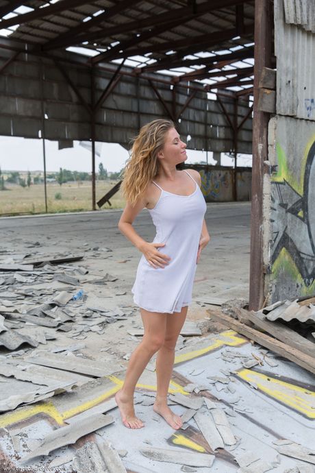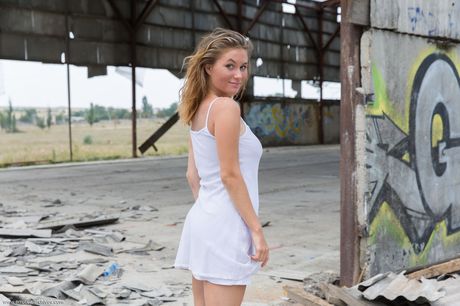 Errotica Archives: 金髪のティーン、アネルが廃墟の中で全裸モデル