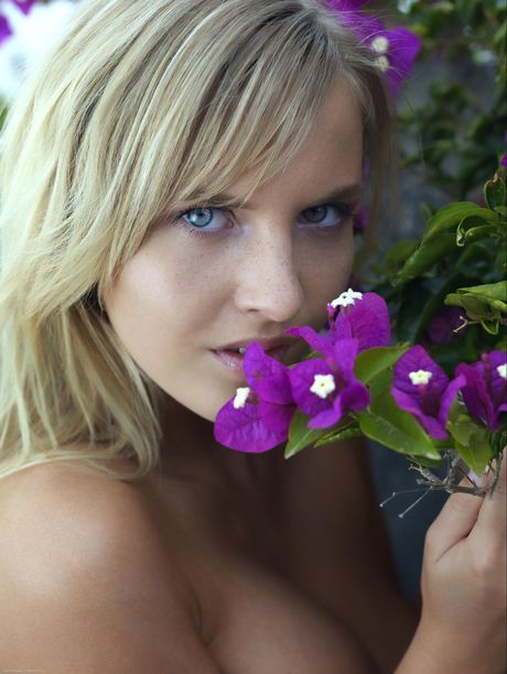 Errotica Archives: ブロンドのティーン、チキータが全裸で庭の毛布の上でモデル撮影。