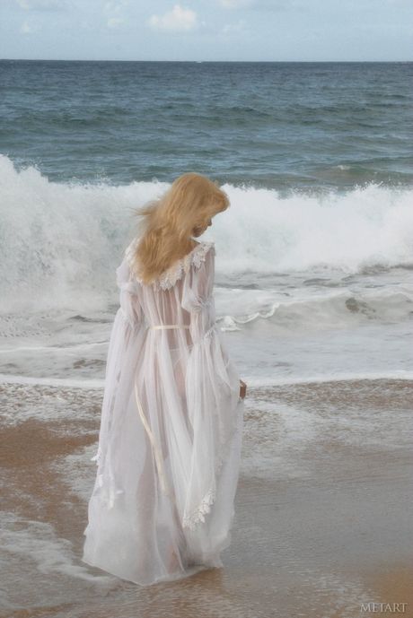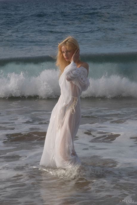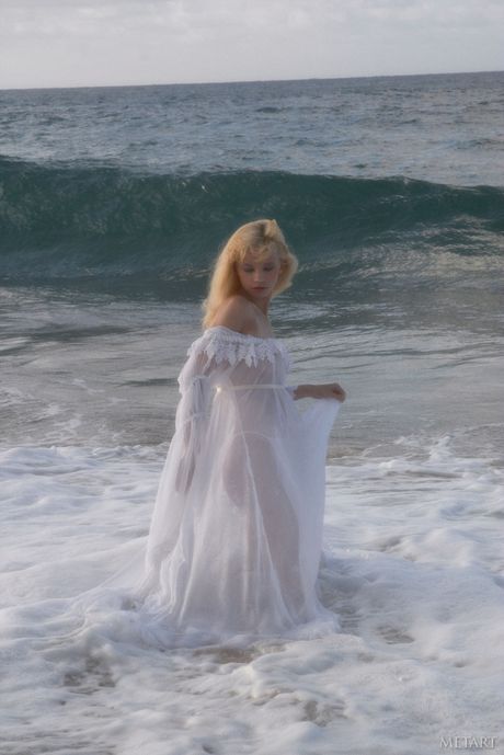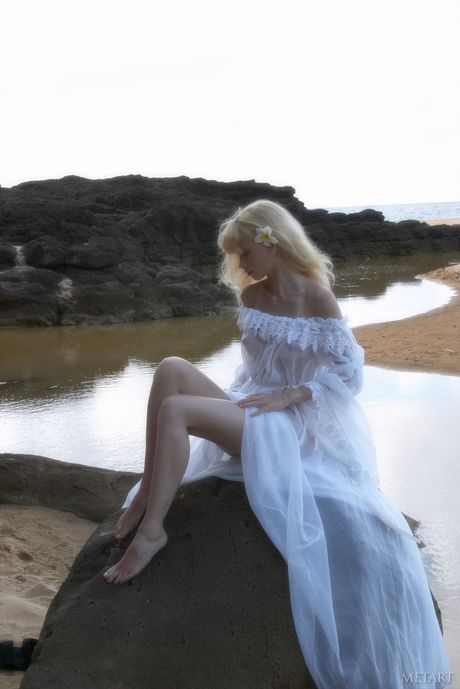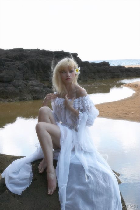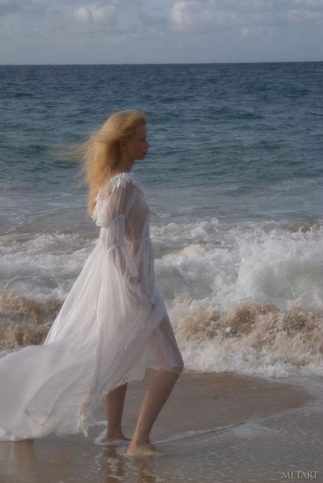 Met Art: ブロンドのティーン、ジェーン・Aがビーチで小さなおっぱいを見せて全裸ポーズ
