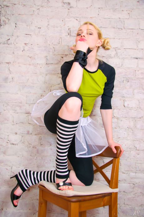 Stunning 18: 金髪のティーン、オリャ・Nがダンスパフォーマンス中にニーソックス姿で全裸に