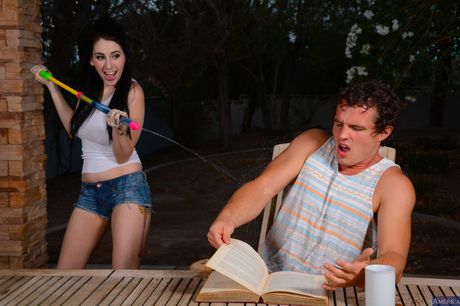 Naughty America: ブルネットの素人、ルナ・C・キツエンが男友達とベッドの上でセックス