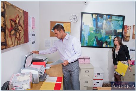 Naughty America: オフィスでファックした後、顔中ザーメンまみれになるブルネット熟女レイチェル・ロクスクス