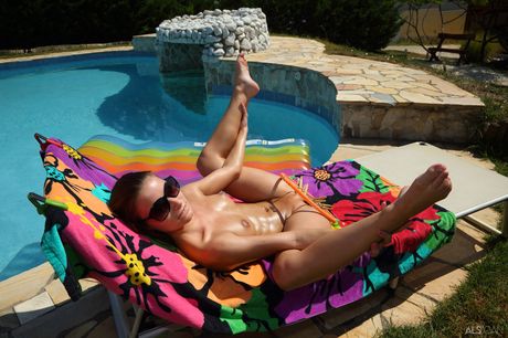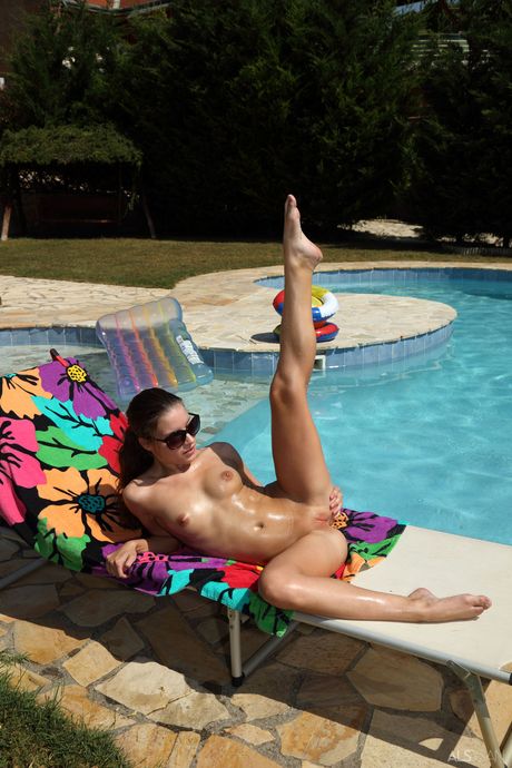 ALS Scan: ブルネットのティーン、アニタ・ベリーニがビキニを脱ぎ、プールサイドでアソコを弄る。
