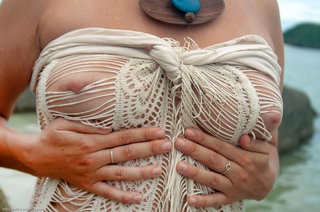 Errotica Archives: 巨乳ティーン、ヴィカトリアが岩場でヌードになる