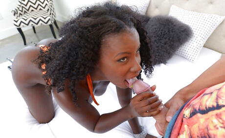 Round and Brown: 好奇心旺盛なジャマイカBが巨根を深く咥え、熱いザーメンを浴びる