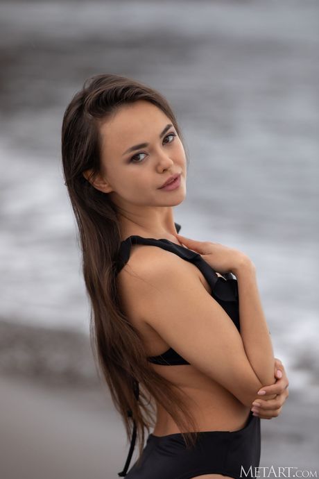 Met Art: デリケートなティーン、リー・ムーンがビーチで裸になり、水中でポーズをとる。