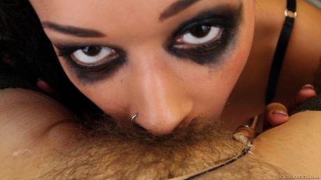 Evil Angel: エボニー・ポルノ女優のスキン・ダイアモンド、ボビー・スターに毛深いマンコを舐められる