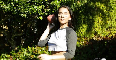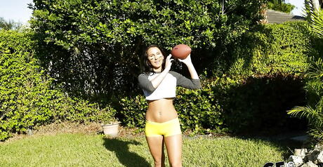 Girlfriend Revenge: 魅惑のブルネット・ベイブ、アリシア・ティーズが派手なショーツ姿で巨乳とセクシーなお尻を野外で披露。
