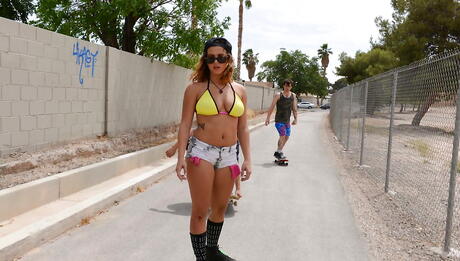 Baby Got Boobs: セクシーなショートパンツに身を包んだフォクシーなアメリカ人ティーン、ケイシャ・グレイが外で激しく犯される。