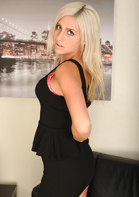 Karups Hometown Amateurs: ホットなアメリカン・ブロンド・ティーン、ザンドラ・シックス(Xandra Sixx)がセクシーなランジェリーと剃毛されたマンコでお尻を露わにする。