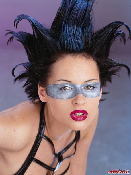 Private: レザースーツに身を包んだセクシーなブルネットが、白と黒のチンポでダブルファックされる