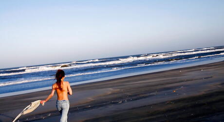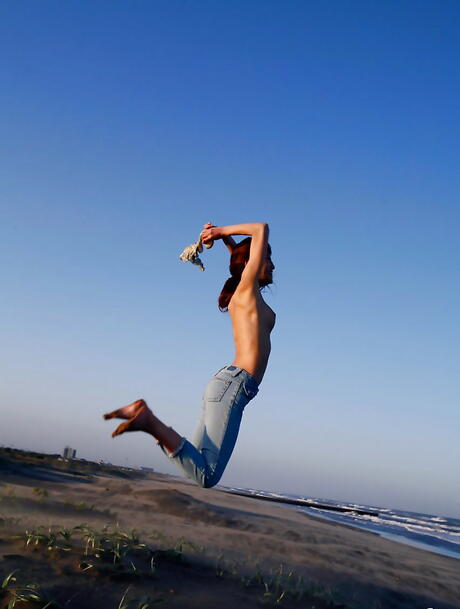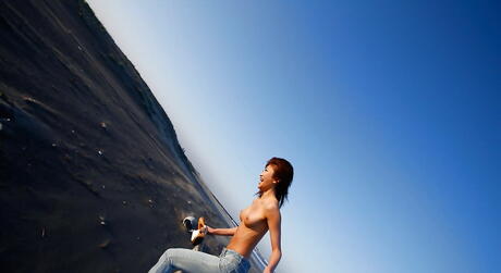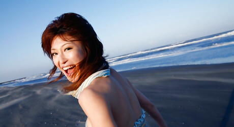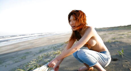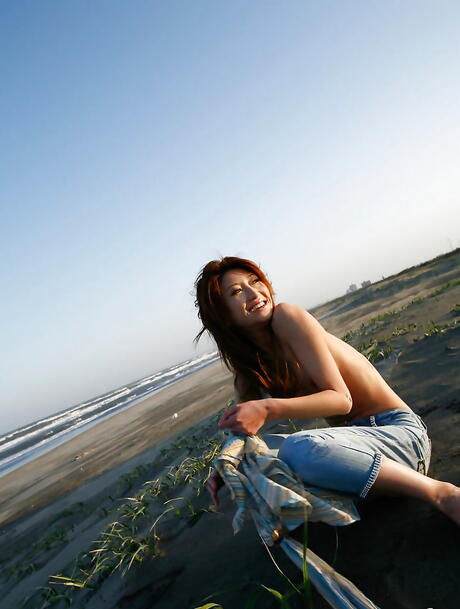 Idols 69: ビーチでジーンズ姿のセクシーなお尻を見せる日本のホットなティーン、佐藤優