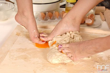 Porn World: ハンガリーのレズビアン、イヴ・エンジェルとソフィー・ムーネがキッチンでお互いのアソコを弄り合う。