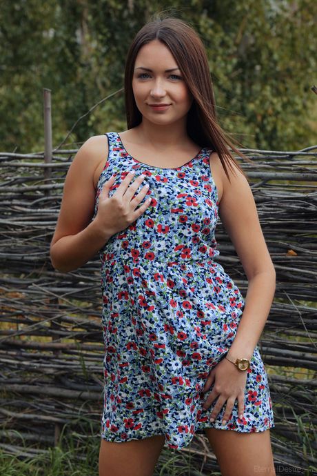 Eternal Desire: 痩せたティーン、アレクサ・デイが屋外の長い草むらでハゲたアソコを見せる。