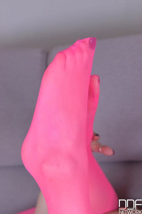 Porn World: マグネティック・ティーン、ミーシャ・クロスがパンストを脱ぎ、ソファの上でアソコを弄ぶ。