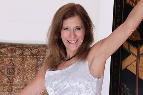 All Over 30: 熟女ジェイ・ディーが大きなお尻を見せ、毛深いアソコを広げる
