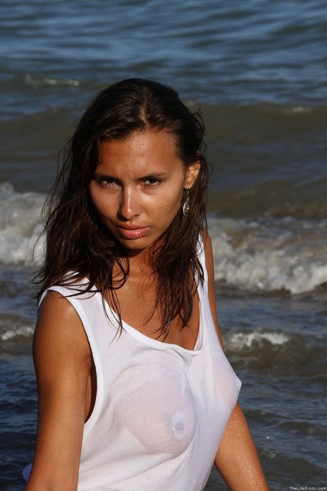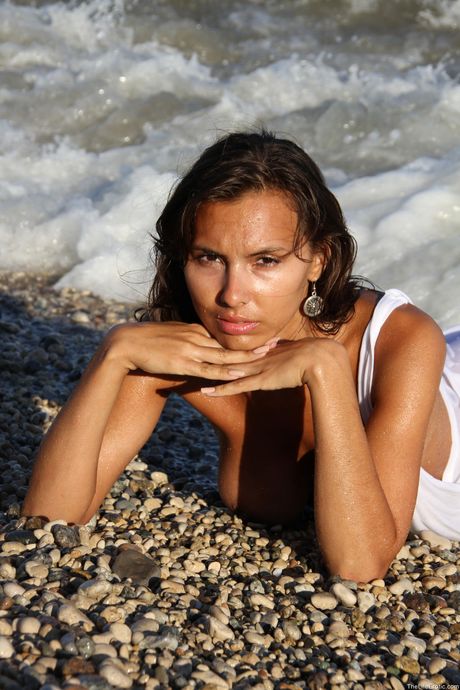 The Life Erotic: 裸のティーン、マドレンがビーチで巨乳と剃毛したアソコを披露