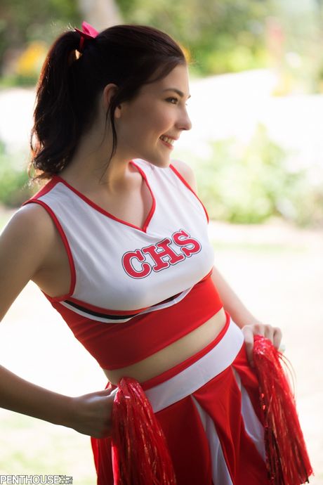 Penthouse Gold: 小柄なチアリーダー、ジェナ・リードが小さなおっぱいとセクシーなアソコを露出