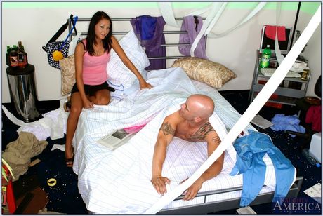 Naughty America: 小柄な女子大生ジェシカ・ヴァレンティノが裸になって小さなおっぱいを見せる