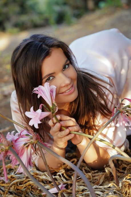Met Art: 小柄なティーン、ブリットが田舎道で裸になるためにラップを脱ぐ