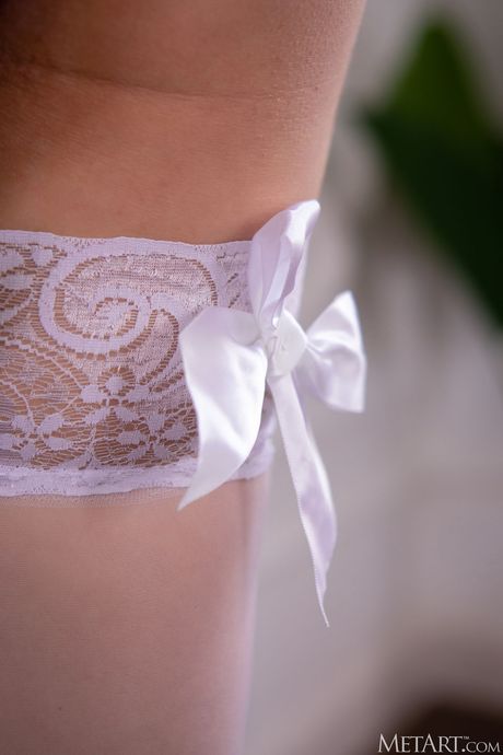 Met Art: 白いランジェリーとストッキングを脱いで裸になる美少女ティーン、カティ・ムス