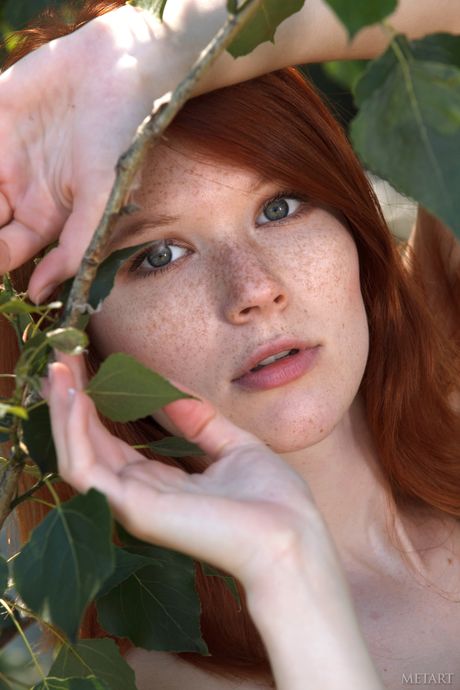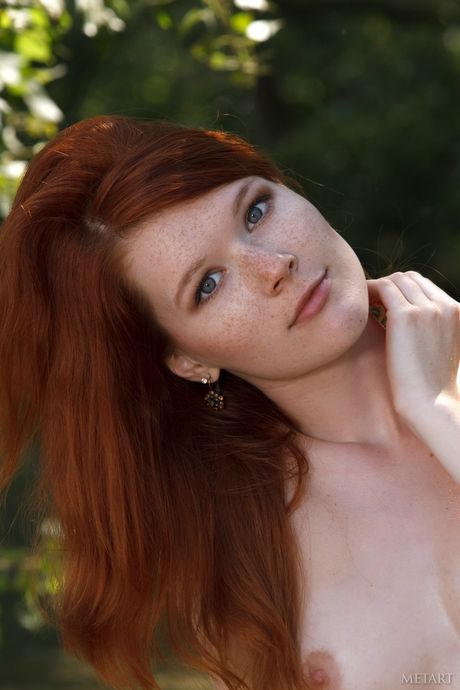 Met Art: 赤毛のアマチュア、ミア・ソリスが全裸でポーズをとり、ピアスだらけのアソコをいじめる。