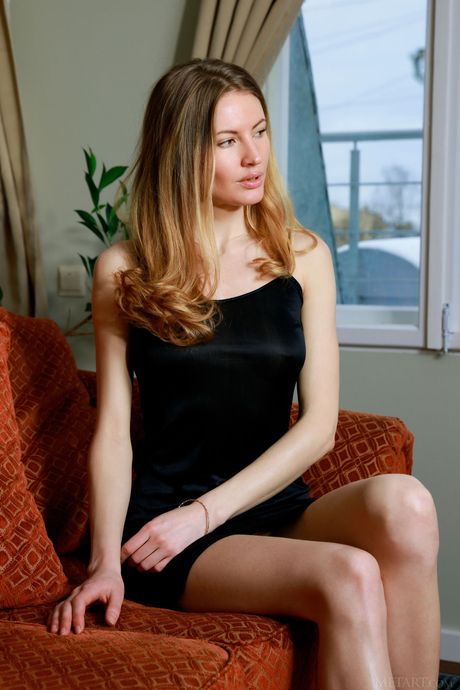Met Art: ロシアのピーチ・ジュディスが黒いドレスを脱いでヌードポーズ